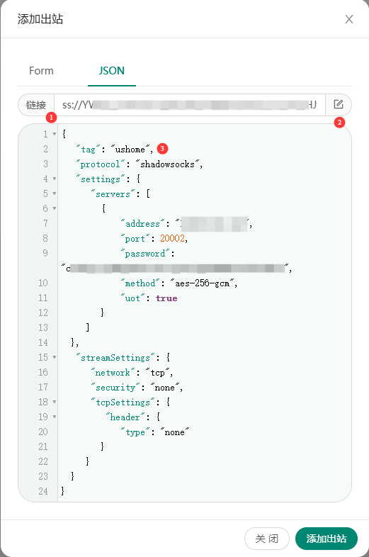 复制上一个3XUI的ss节点信息,粘贴后修改一下tag方便记忆